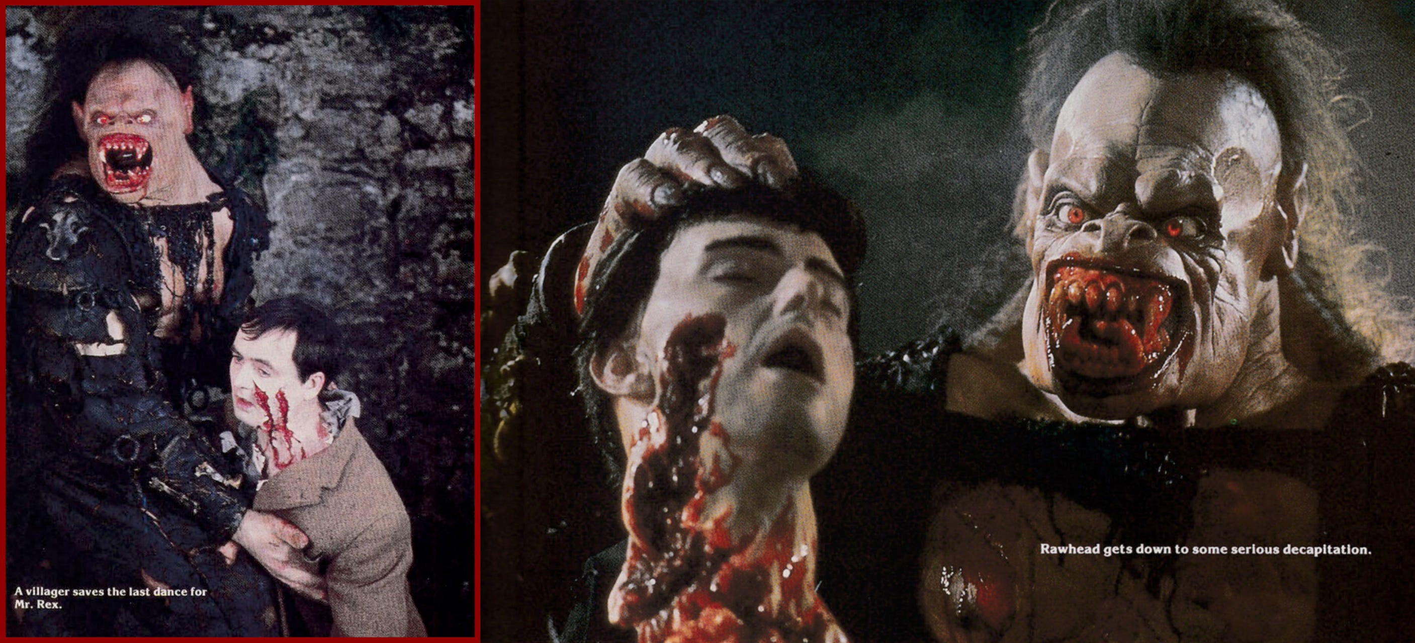 I got to learn about such films from the reviews and featured articles found in Fangoria magazine, and still remember the tight feeling in my stomach after I turned the page to reveal a demonic image of Rawhead Rex holding a mauled villager. Sadly the film turned out to be a pretty awful B-movie, which I later learned drove Clive Barker to insist on directing his next screen adaptation - Hellraiser.