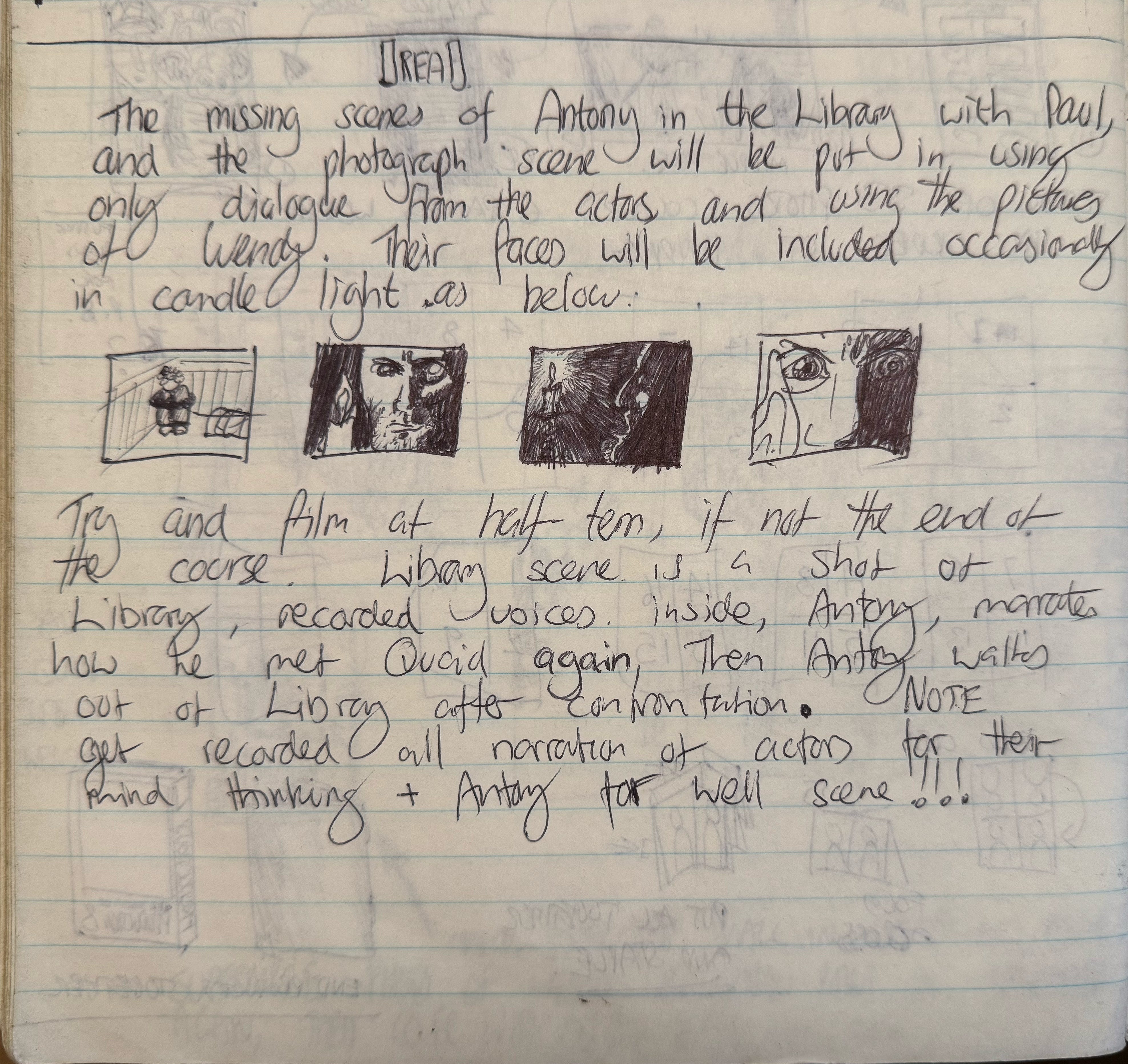 Frustrated but clearly not deterred, I sketched out an idea of how I could complete the two major missing scenes, without having to see the characters in detail.