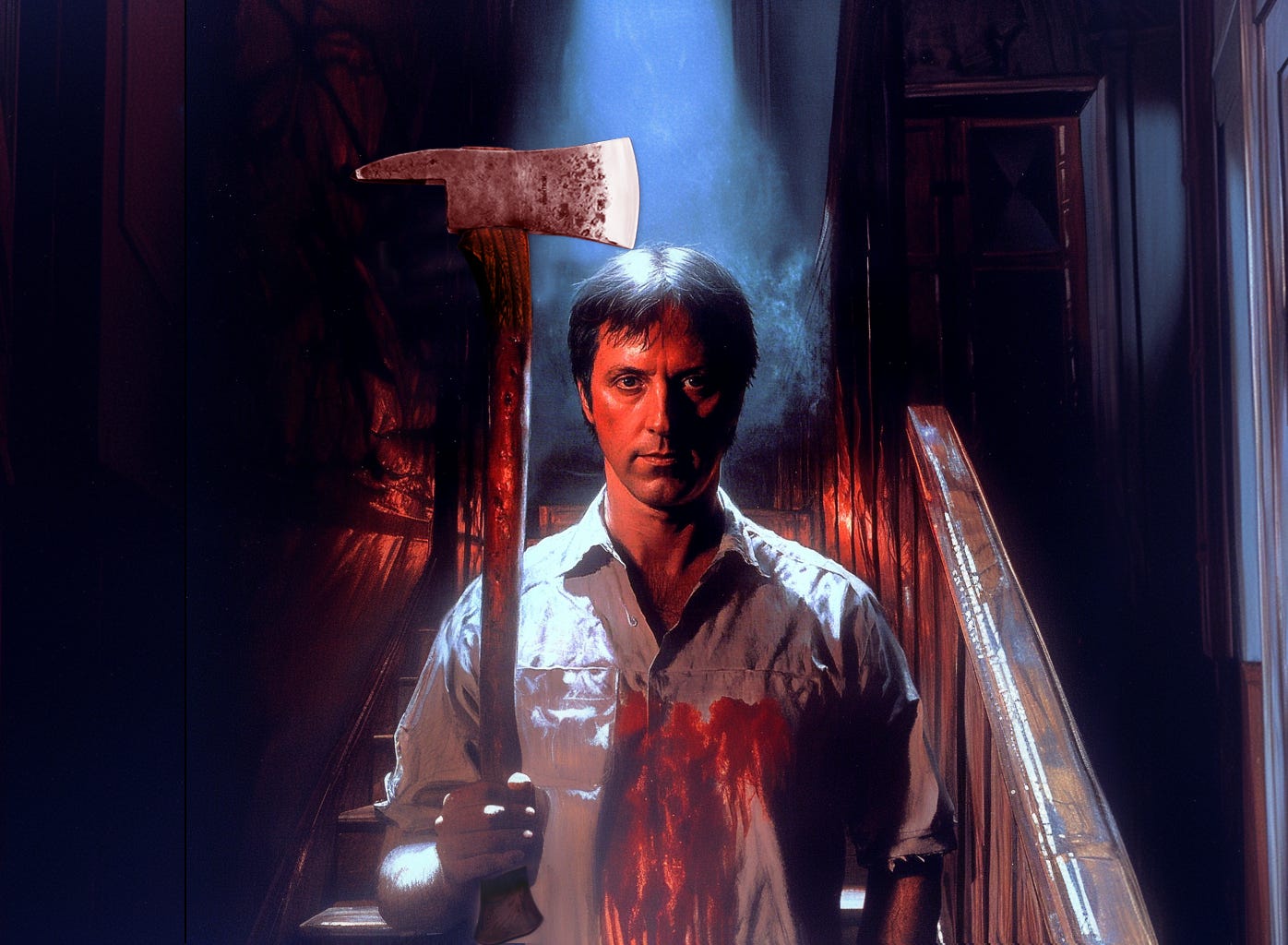 The one I miss the most, is a scene in Quaid’s kitchen, after Steve falls from the shaft (before he is discovered by the policeman). In this scene Steven, in a regressive child-like state, gets agitated, wanting his Mama. In a tantrum, he throws a load of Quaid’s files up in the air, many of which turn out to be graphic photos of people killed from axe wounds. The way Steven interprets what he sees, reveals his child-like mental state, helping to explain his mindless slaughter of Quaid at the end, while also offering the reader more insight into Quaid’s obsession with his own fear.